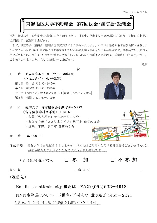 『東海地区大学不動産会 総会・講演会・懇親会』のご案内