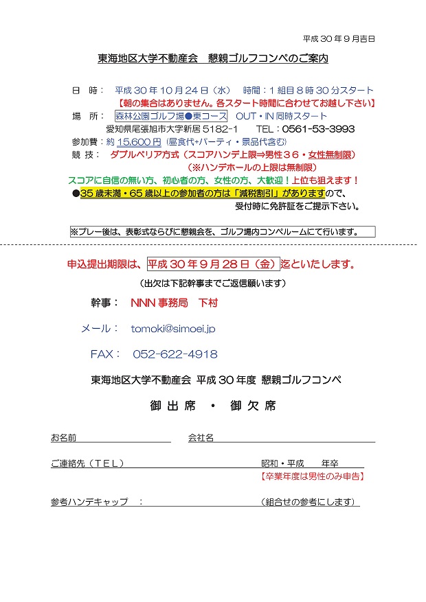 東海地区大学不動産会 懇親ゴルフコンペのご案内